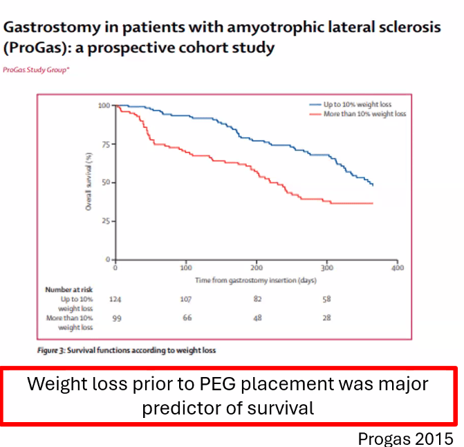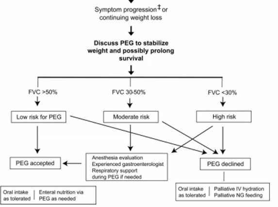 FVC> 50%, ideally before significant weight loss (>10% of BW)