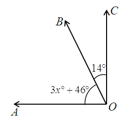 The measure of angle AOC is 90 degrees. Find the value of x.