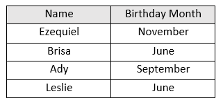 No, when you input the month of June there are multiple outputs (Brisa, Leslie, and a ton more people)