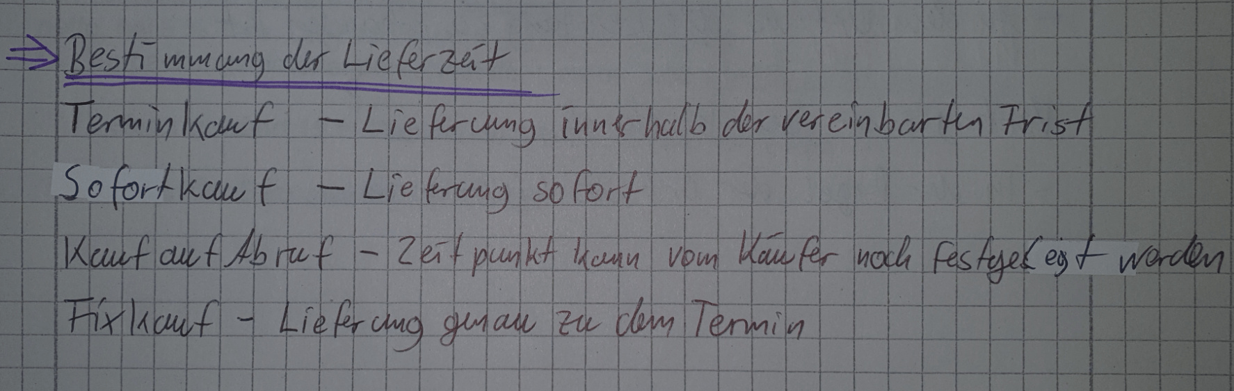 Was ist ein Terminkauf, ein Sofortkauf, ein Kauf auf Abruf und ein Fixkauf