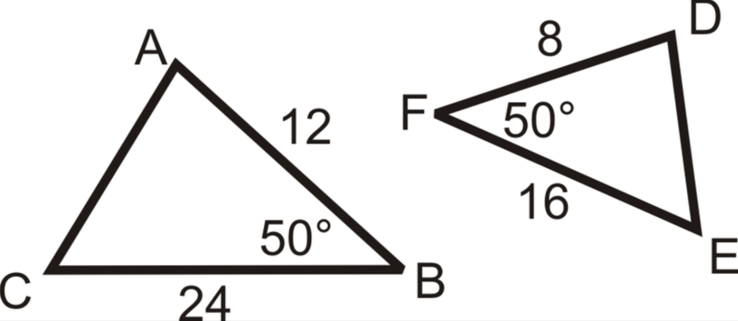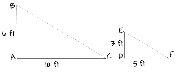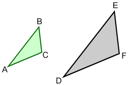 Triangle ABC is the image of triangle DEF after a dilation. Is the scale factor greater than or less than one?