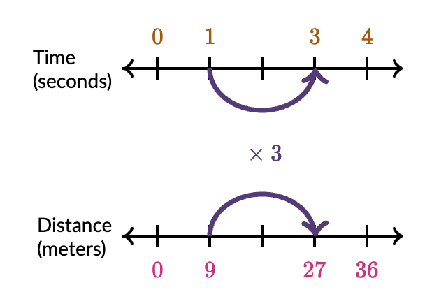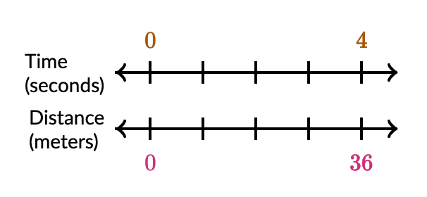 The double number line shows that in 4 seconds, a sea turtle can swim 36 meters. Based on the ratio shown in the double number line, how far can a sea turtle swim in 3 seconds?