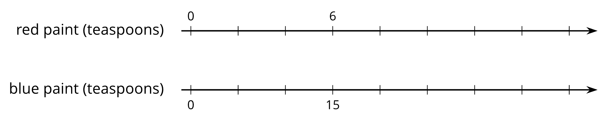 A mixture of purple paint contains 6 teaspoons of red paint and 15 teaspoons of blue paint. To make the same shade of purple paint using 35 teaspoons of blue paint, how much red paint would you need? Use the double number line diagram.