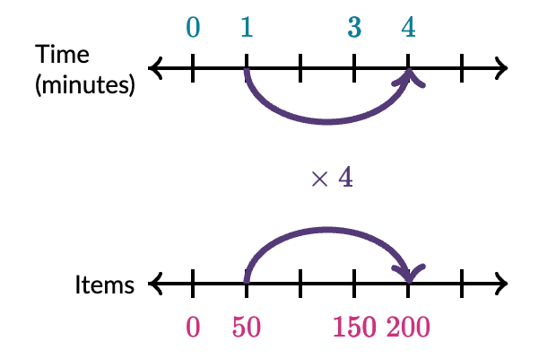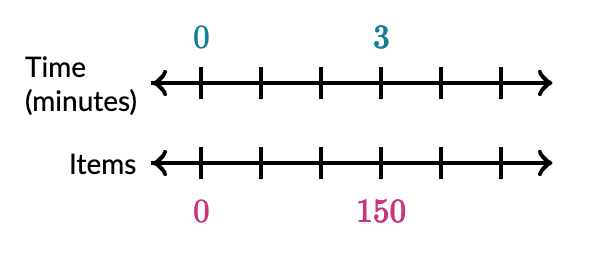 Faye can sort 150 recyclable items in 3 minutes. Based on the ratio shown in the double number line, how many recyclable items can Faye sort in 4 minutes?