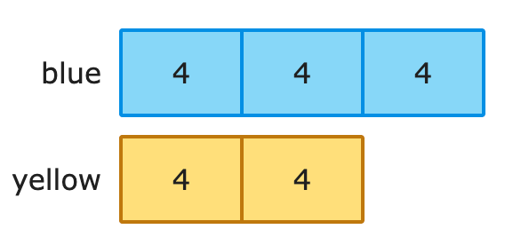 The Cedarburg Student Council helped decorate the gym for the end-of-year dance. The group used 3 rolls of blue paper streamers for every 2 rolls of yellow paper streamers. If the students used 12 rolls of blue streamers, how many rolls of yellow streamers did they use? Use the tape diagram to show your reasoning.