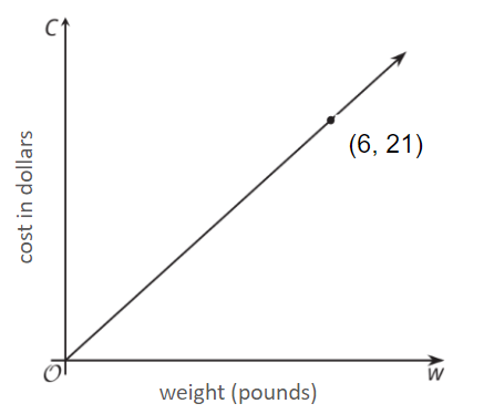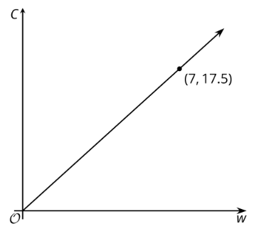 The graph shows the cost C in dollars of w pounds of peanuts, a proportional relationship. Which of the statements is true?