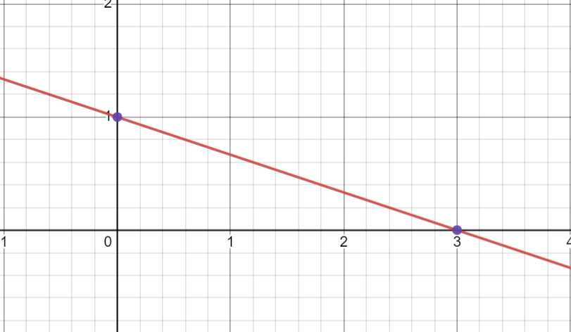 Escribe una función lineal que pase por los puntos (0,4) y tenga una pendiente de -3.