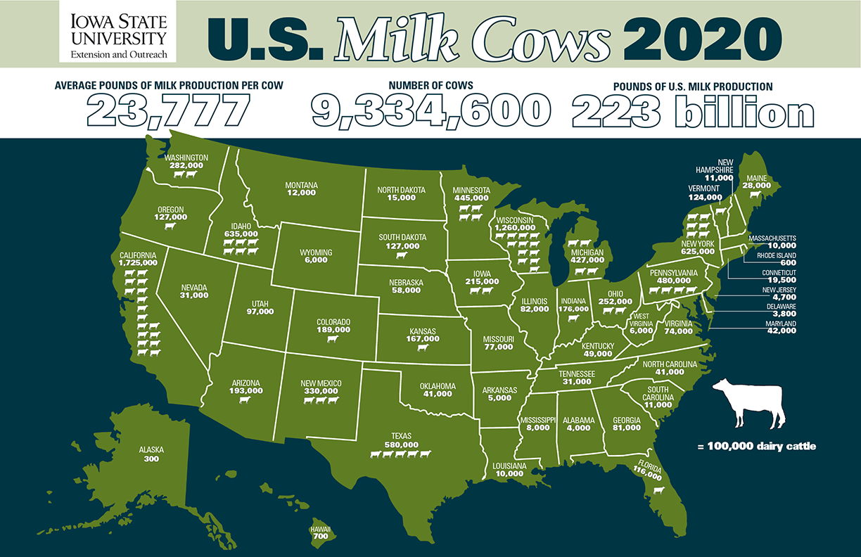 Dairy farming is an example of intensive commercial agriculture, which keeps cows in large feedlots to produce milk for years. The climate for dairy farming includes moderate temperatures and rainfall. This state is responsible for more than half the United States' dairy production...