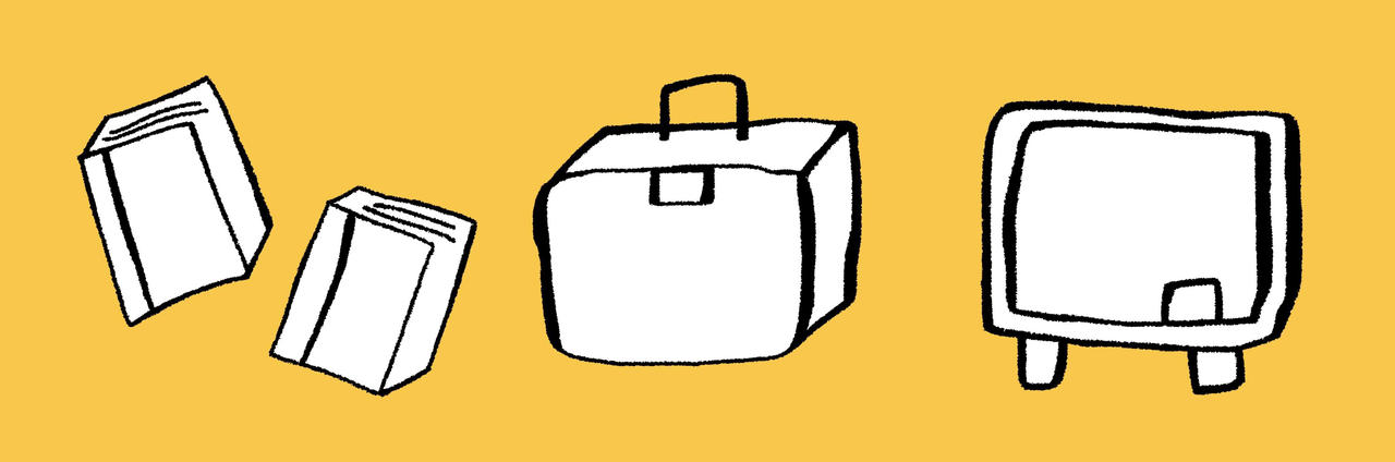 What place has books, a luncbox, and a chalkboard?
