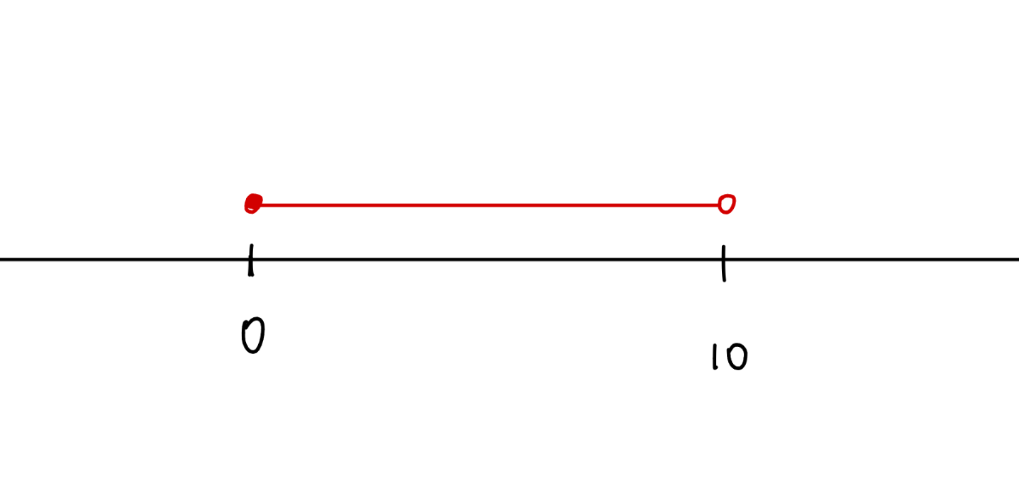 x in [0, 10 [