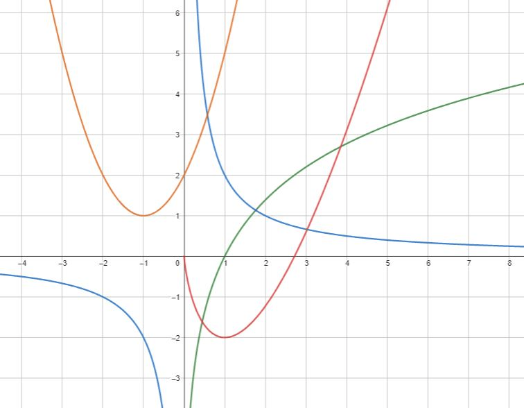 Die Grafik zeigt Graphen von F, f und f'. Ordnen Sie korrekt zu! Eine Funktion passt nicht zu den anderen.