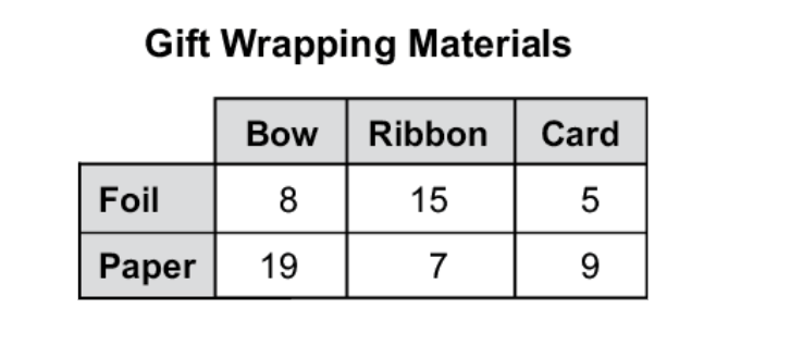 What is the experimental probability that she wraps a gift in paper and uses a ribbon, P(paper, ribbon)? Write your answer as a fraction in simplest terms?