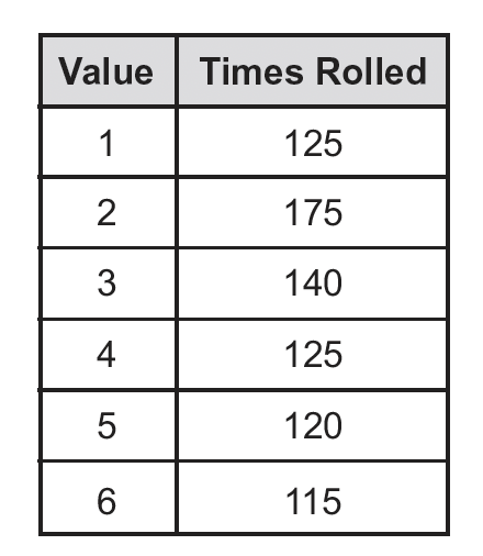 Based on the results, what is the probability of rolling a 3 or 4? Simplify your fraction.