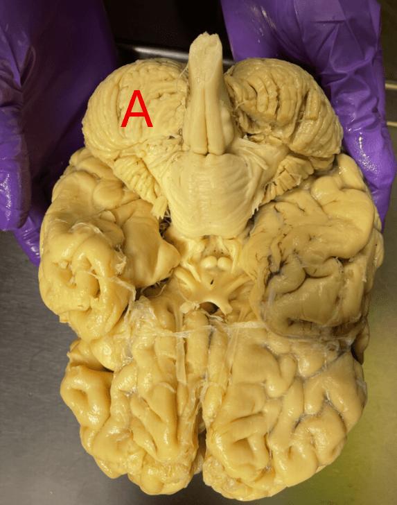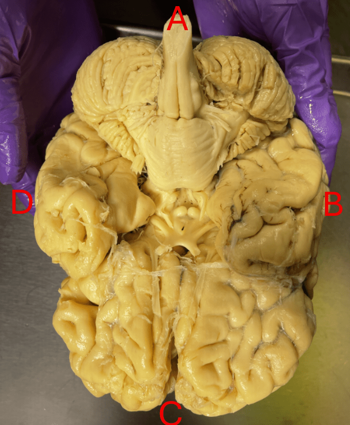 This is an ______ view of the brain. Orient yourself and identify which letter correlates with anterior, posterior, right, and left.