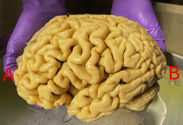 Identify anterior vs posterior. Additionally, identify if this is the R or L hemisphere.