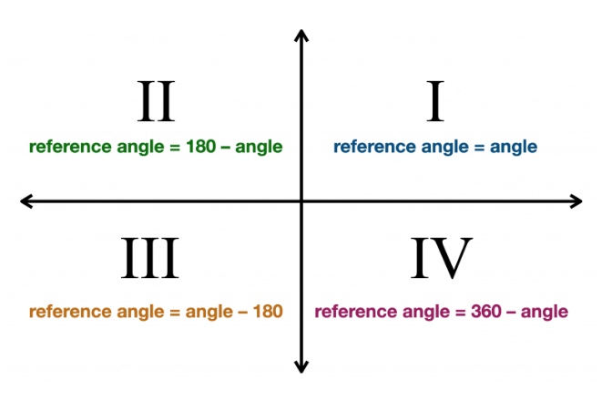 List how to find the reference angle in each of the four quadrants.