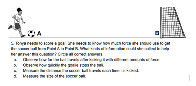 c. Measure the distance the soccer ball travels each time it’s kicked.
