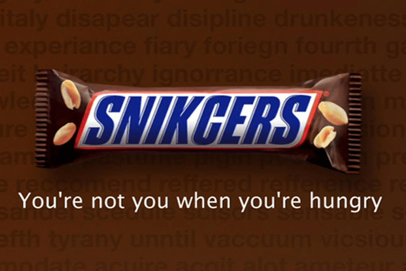 Just like babies before their snack... "you're not you when you're hungry" is the slogan of this candy bar.