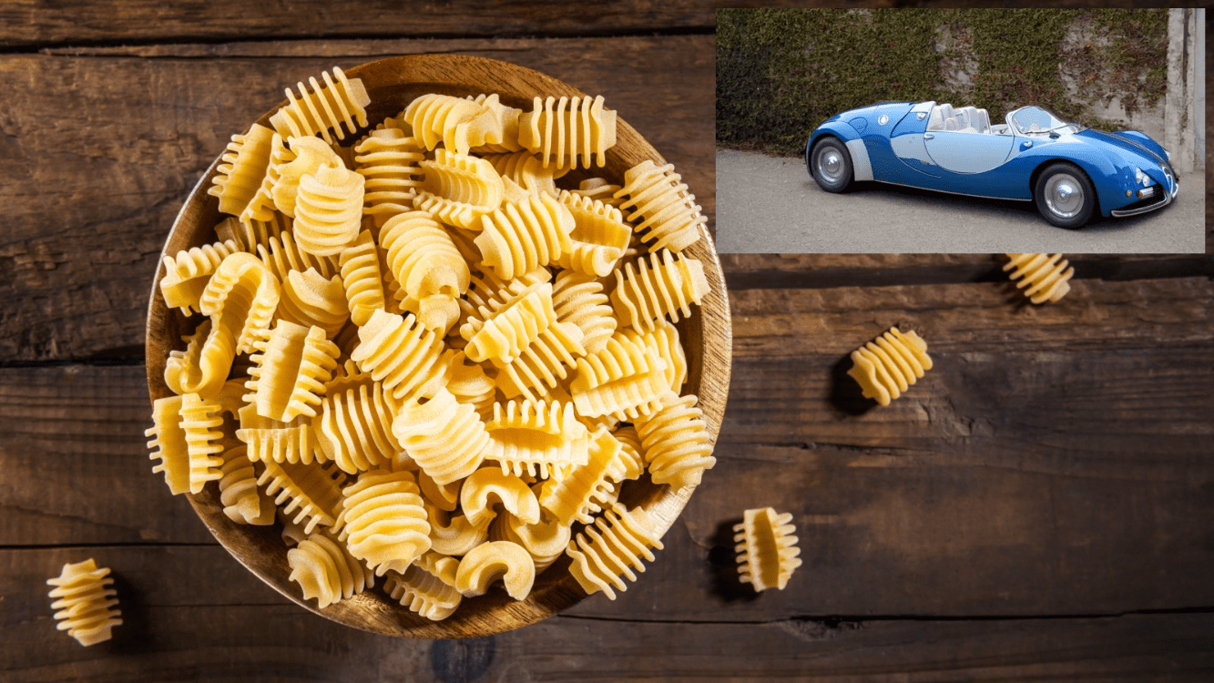 This relatively new pasta shape (less than 100 years old) is modeled after the Bugatti's radiator.