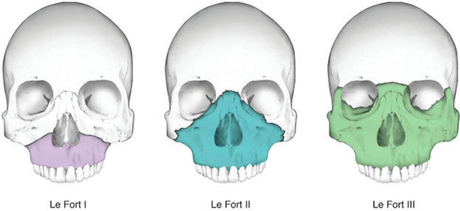 LeFort I: palate mobile (fx below nose)