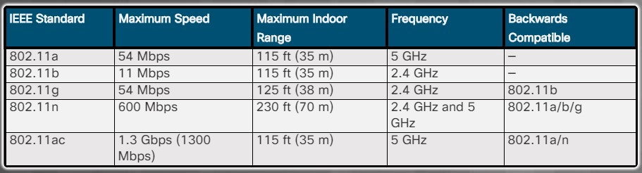 What are the wifi standards, Max speed, Frequency and backward compatibly.