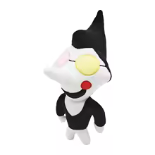 Which short video game character wears a suit black, white pants, yellow and pink glasses, and has a big nose?