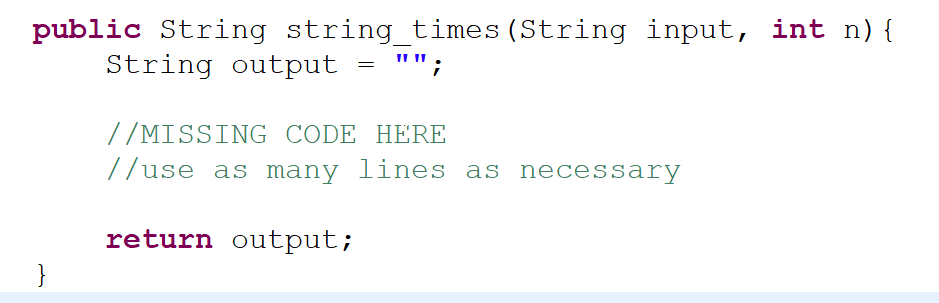 Given a string input and an int n return a larger string that is n copies of the original string.