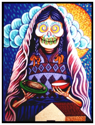 Painted by Ernesto Olmos, this painting is themed and named for this Mexican celebration of life and death.