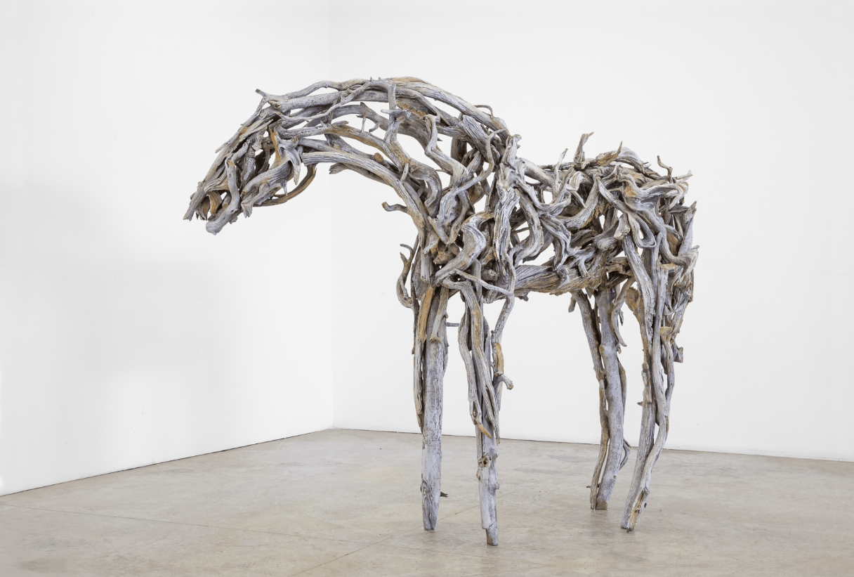 Debra Butterfield creates horse sculptures using drift wood, also known as this medium.