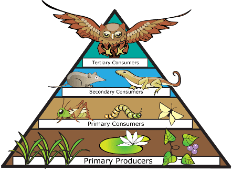 Start with a producer, and then include 3 more levels: a primary, secondary and tertiary consumer. Example: