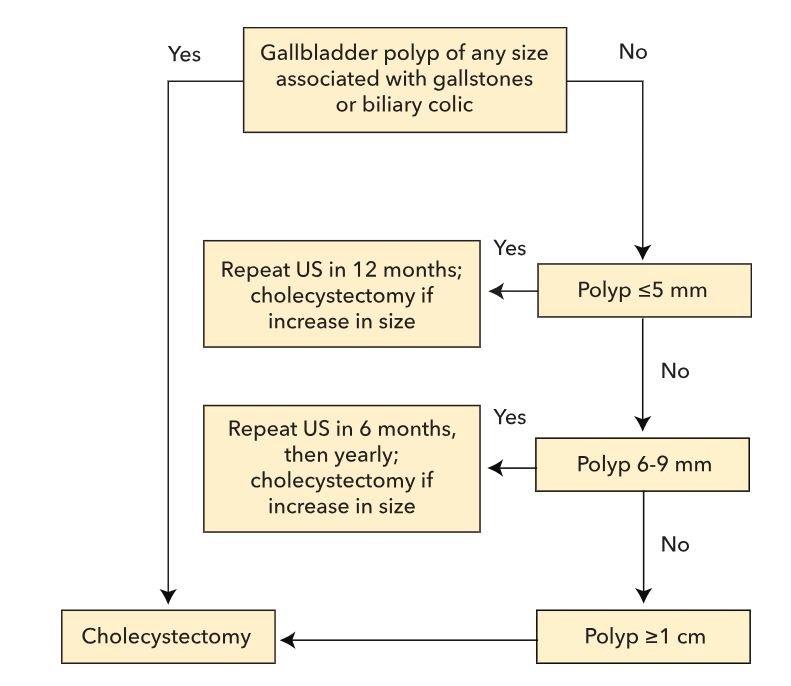Treatment/surveillance for asymptomatic gallbladder polyp >1cm