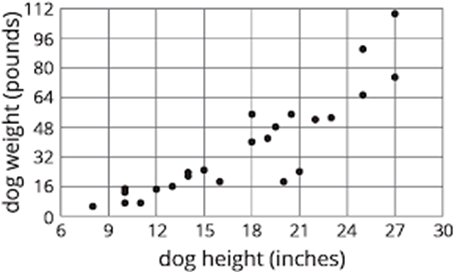 A veterinarian collected data on the weight of local dogs compared to their height. Describe the relationship between dog height and dog weight.