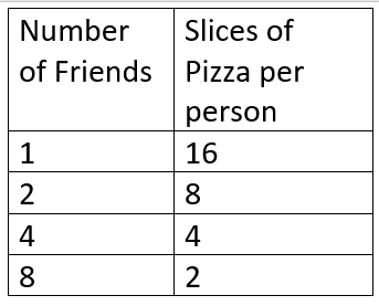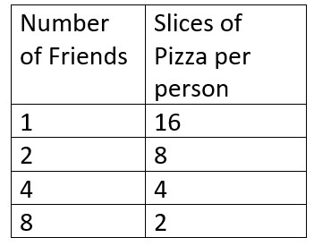 Inverse: Friends x slices always equals 16