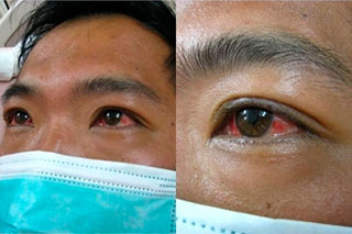 Ocular finding of redness without exudate that can occur with leptospirosis