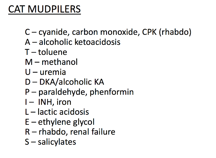 These are 4 causes of anion gap metabolic acidosis