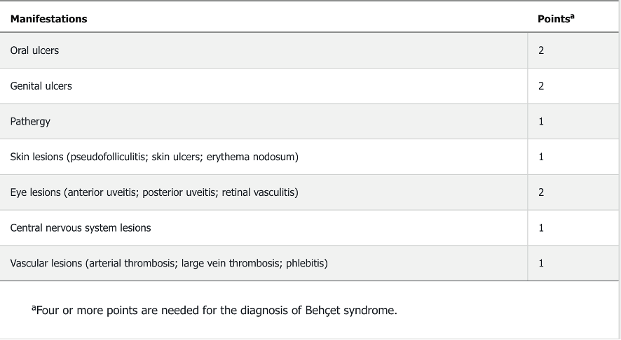 These are three diagnostic findings for Behçet disease