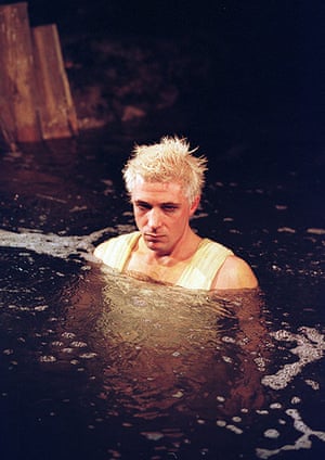 A giant lake was at the foreground of the set design of a 2000 production of this Shakespearean play, with the actor for Ariel seen here floating and pouting about
