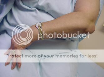 Rheumatoid arthritis: ulnar deviation of fingers, rheumatoid nodule at elbow