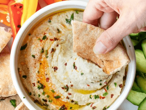 FOOD - DIP TYPE FOOD MADE FROM COOKED & MASHED EGGPLANT MIXED WITH OLIVE OIL, LEMON JUICE, GARLIC & SPICES