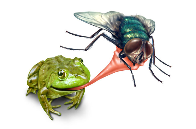 What assisted a frog in getting its food? (What body part?)