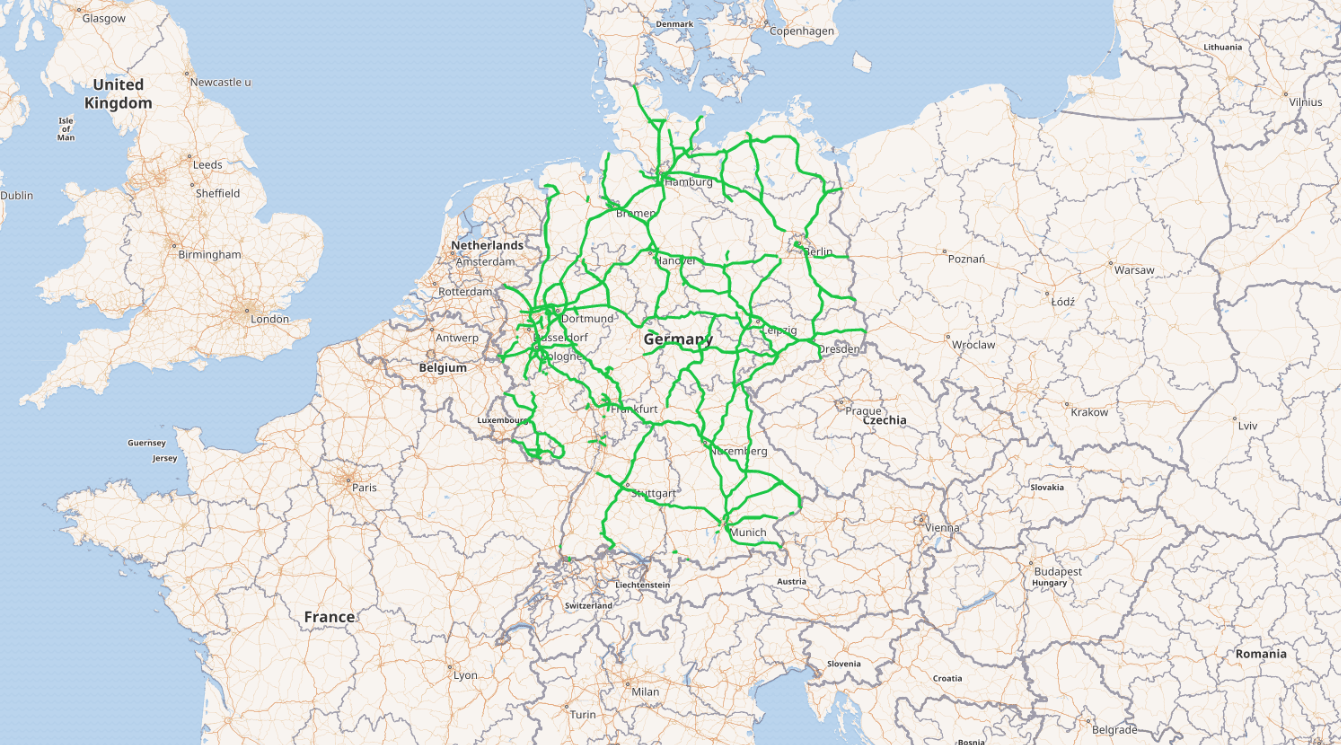 Pictured in green is this German highway system, most known for its lack of a speed limit