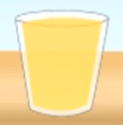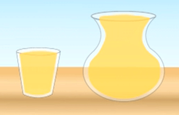 Which can hold less juice? The glass of juice or jug of juice? En espanol: ¿Cuál puede contener menos jugo? ¿El vaso de jugo o la jarra de jugo?
