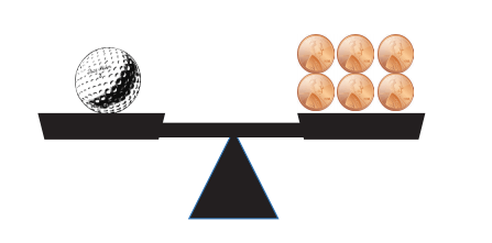 En espanol: La pelota de golf y los centavos tienen el MISMO PESO