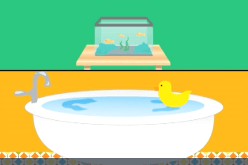 Which can hold more water? The bath tub or the fish tank? En espanol: ¿Cuál puede contener más agua? ¿La bañera o la pecera?