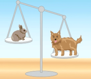 the rabbit is lighter than the dog (El conejo es más ligero que el perro.)