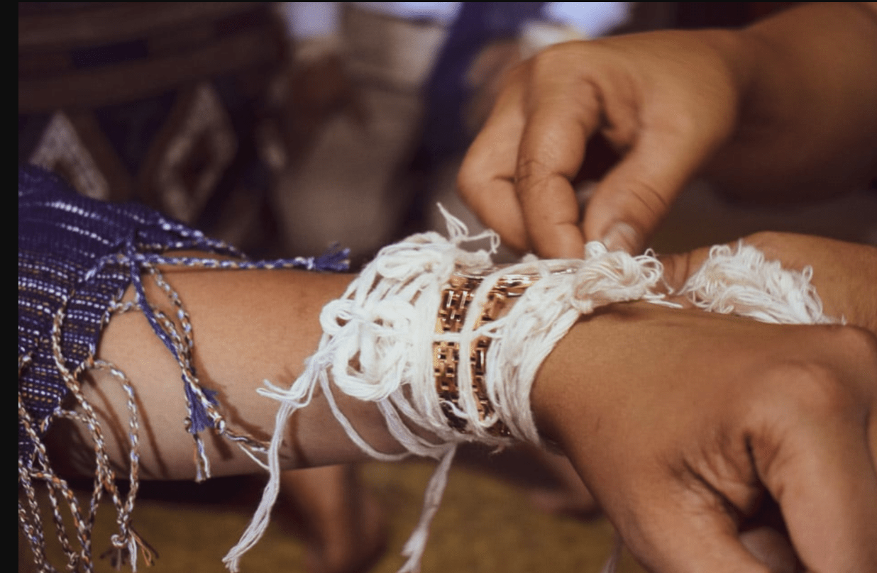 The Baci (or Sou Khuan) ceremony is the ritual that ties cotton strings around this body part to bless or protect the person.