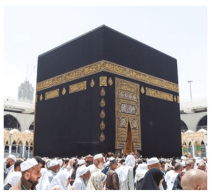 What is the name of the huge black stone that stands in Mecca in honour of Allah?