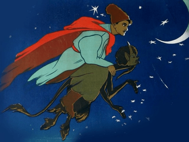Which "means of transport" did the blacksmith Vakula from the work "The Night before Christmas" get to St. Petersburg by?