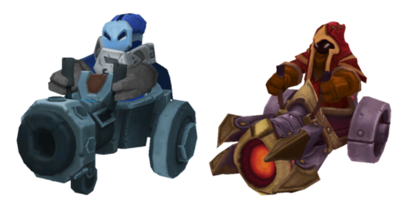 Super minions, spawner i den lane hvor en modstanders inhibitor (phoenix) er ødelagt. Giver 60-90 guld at last-hitte (scaling).