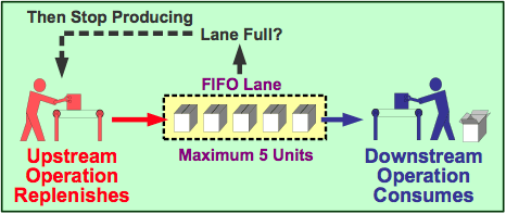 This type of pull production system refers to an inventory stocking system in which items are stored by the operation that produces them (upstream) until they are retrieved by the operation that needs them (downstream).